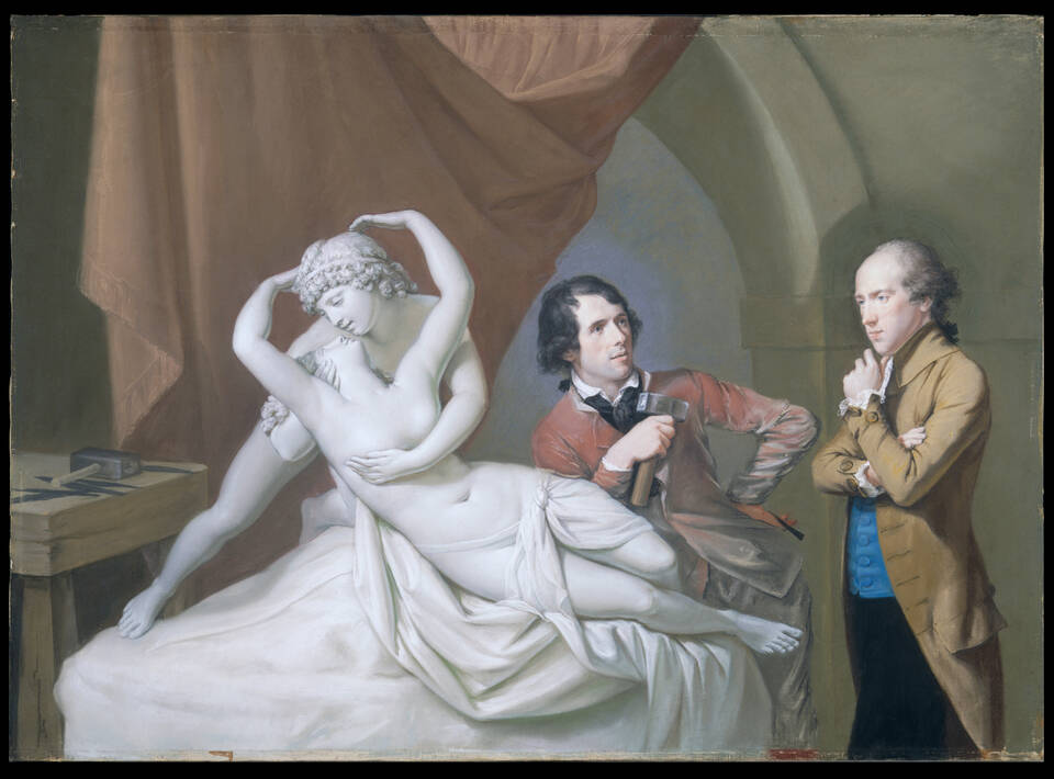 Antonio Canova in his studio with Henry Tresham and a plaster model for Cupid and Psyche, pastel, by Hugh Douglas Hamilton, 1788 – 1791, Rome, Italy. Museum no. E.406-1998. © Victoria and Albert Museum, London