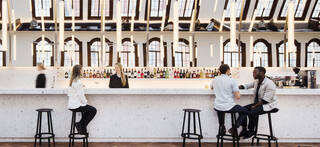 The centrepiece of the Members' Restaurant is a monolithic terrazzo bar, which includes prosecco on tap, a range of bottled beers, wine, and bespoke cocktails inspired by the V&A's exhibition programme.