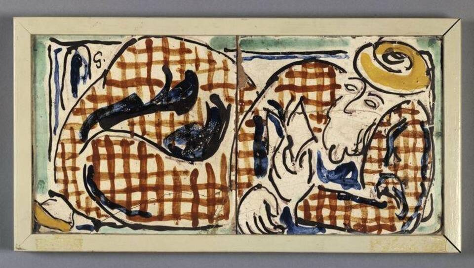 Lytton Strachey in Repose, tile panel, painted by Duncan Grant, made by Omega Workshops, mid 1920s, EnglandV&A South KensingtonOn display -