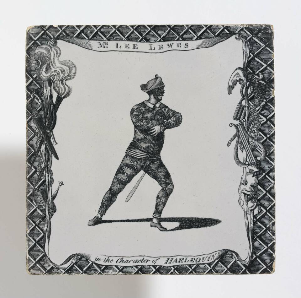 Mr Lee Lewis in the character of Harlequin, tile, printed by Guy Green, made by Sadler and Green, about 1777 – 80, Liverpool, EnglandV&A South KensingtonView by appointment