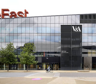 V&A East Storehouse main entrance is on Parkes Street, E20 3AX, located inside the Here East building. Find the V&A East Storehouse entrance on Google maps or what3words crate.super.ranks