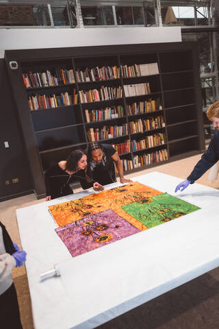 The Study Centre allows access to objects and items in storage at Storehouse. There are four study areas including the Clothworkers' Centre for the Study and Conservation of Textiles and Fashion. The Study Centre also includes the David Bowie Centre, opening in September 2025.